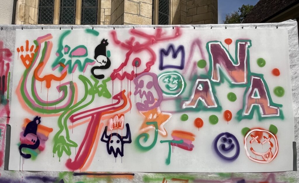 Tout au long de la journée, les participants ont pu manier la bombe de spray. Certains se sont lancés dans des créations collectives, d’autres ont préféré s’exprimer en solo sur de grandes feuilles ou de mini-bâches, des oeuvres uniques, souvent emportées comme souvenirs d’une journée magique.